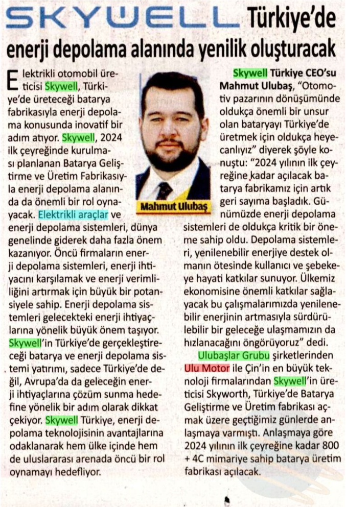 Yayın Adı: Bursa’dan Meydan Yayın Tarihi: 22.08.2023 İlginizi çekebilir;Skywell’den Sabit Fiyat KampanyasıSkywell Türkiye’de Enerji Depolama Alanında Yenilik Oluşturacak